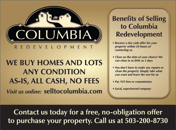 Columbia Redevelopment is a real estate investment company based in Portland, Oregon that specializes in purchasing residential properties in the Portland metro area. Our all cash, "as-is", no fee purchases provide sellers with immediate results. Whether you have a home that is in need of extensive repairs, a vacant lot, or something in between, we have the experience and ability to structure a purchase that will address even the most complicated situation.