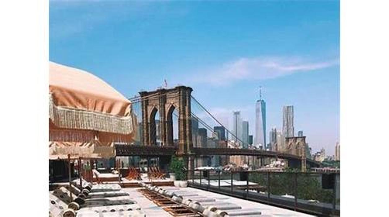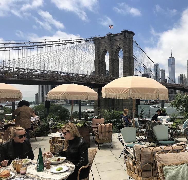 Soho House's newest New York property, DUMBO House is located in Empire Stores on the Brooklyn waterfront and features panoramic views of the Brooklyn Bridge, East River and the Manhattan skyline. It has a full floor of club space with a library and restaurant, an outdoor terrace and a rooftop pool.