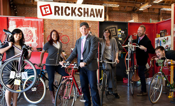 Rickshaw manufactures customizable messenger bags, laptop bags, backpacks and sleeves all made-to-order in their own San Francisco Factory. Rickshaw designs products for the energy of urban cities, transport, and the creative spirit. Rickshaw embodies a passion for bags, sustainability and local manufacturing through a strong set of humanistic, environmental and social values that guide every aspect of their business. The name Rickshaw derives from three Japanese characters meaning "human powered vehicle"-a metaphor for the strength of the human spirit, and apropos for a company making bags for bicycle enthusiasts.